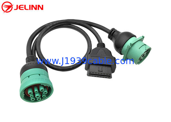 J1939 9 Pin to OBD 2 OBD2 16 Pin Splitter Y Cable 9Pin Splitter Wire สาย เครื่องใช้สําหรับรถบรรทุก GPS